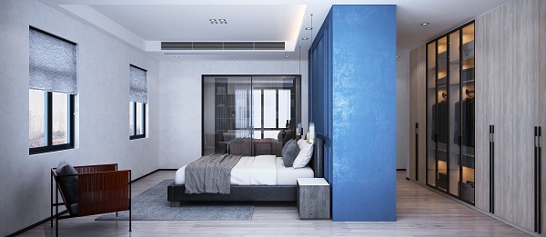 古典藍(lán)的軟包床與同色系地毯奠定主臥空間高貴優(yōu)雅的調(diào)性。簡約木紋床頭護(hù)墻板搭配燈帶形成空間亮點,與梳妝臺、電視柜板面呼應(yīng),整體空間調(diào)性統(tǒng)一,質(zhì)感滿滿。衣帽間和休息區(qū)一墻之隔,并且非常巧妙地將墻體利用起來做柜體,時尚又便利。極簡的藝術(shù)燈飾用輕描的線條,給臥室?guī)磔p盈感,整體沒有過多的花哨和多余的軟裝,卻把空間的美感和實用功能發(fā)揮到了極致。