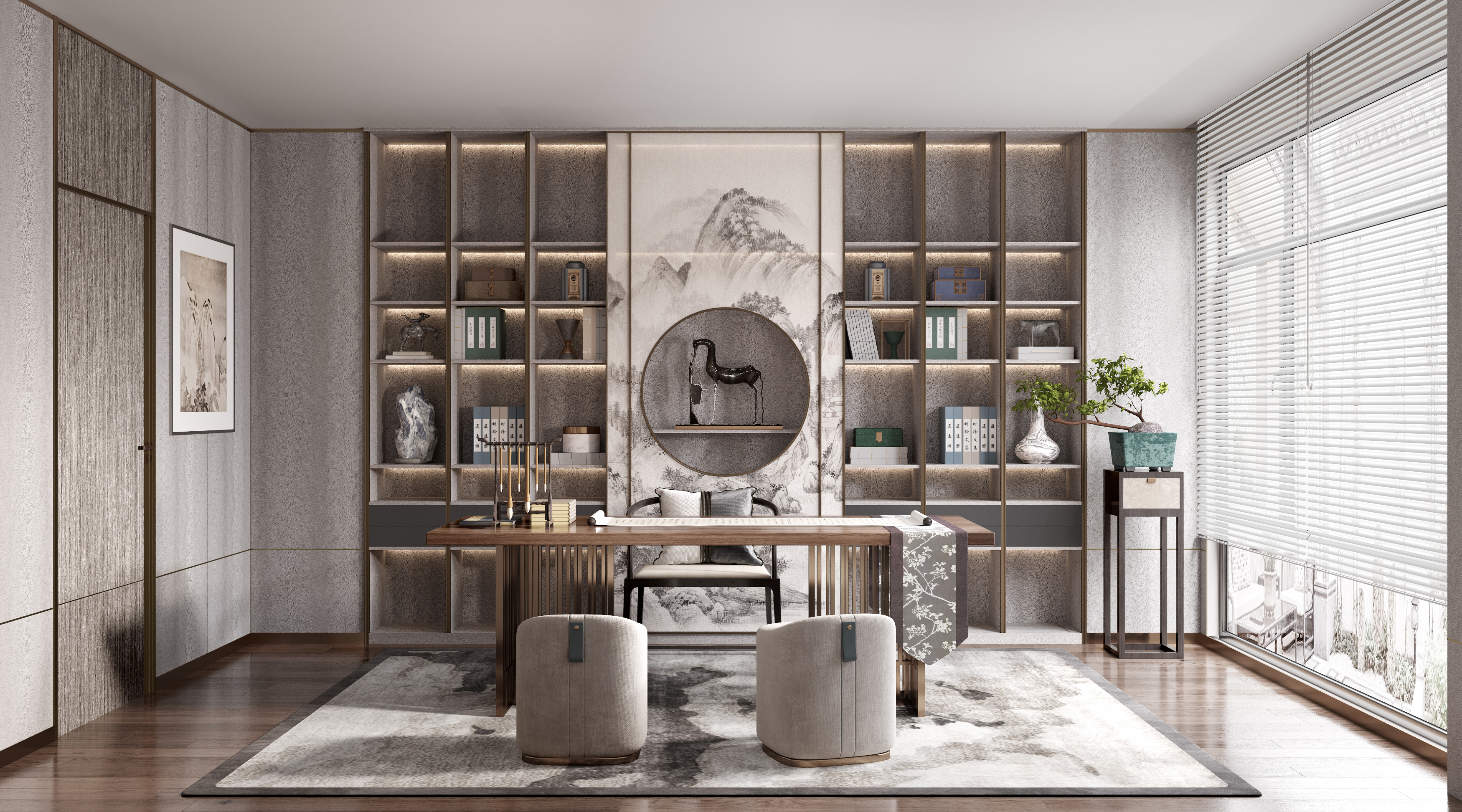 新中式風(fēng)格,從內(nèi)斂沉穩(wěn)的古意出發(fā),運(yùn)用歷史與現(xiàn)代融合、巧妙兼柔的布局風(fēng)格,體現(xiàn)簡(jiǎn)約的中式文雅。
