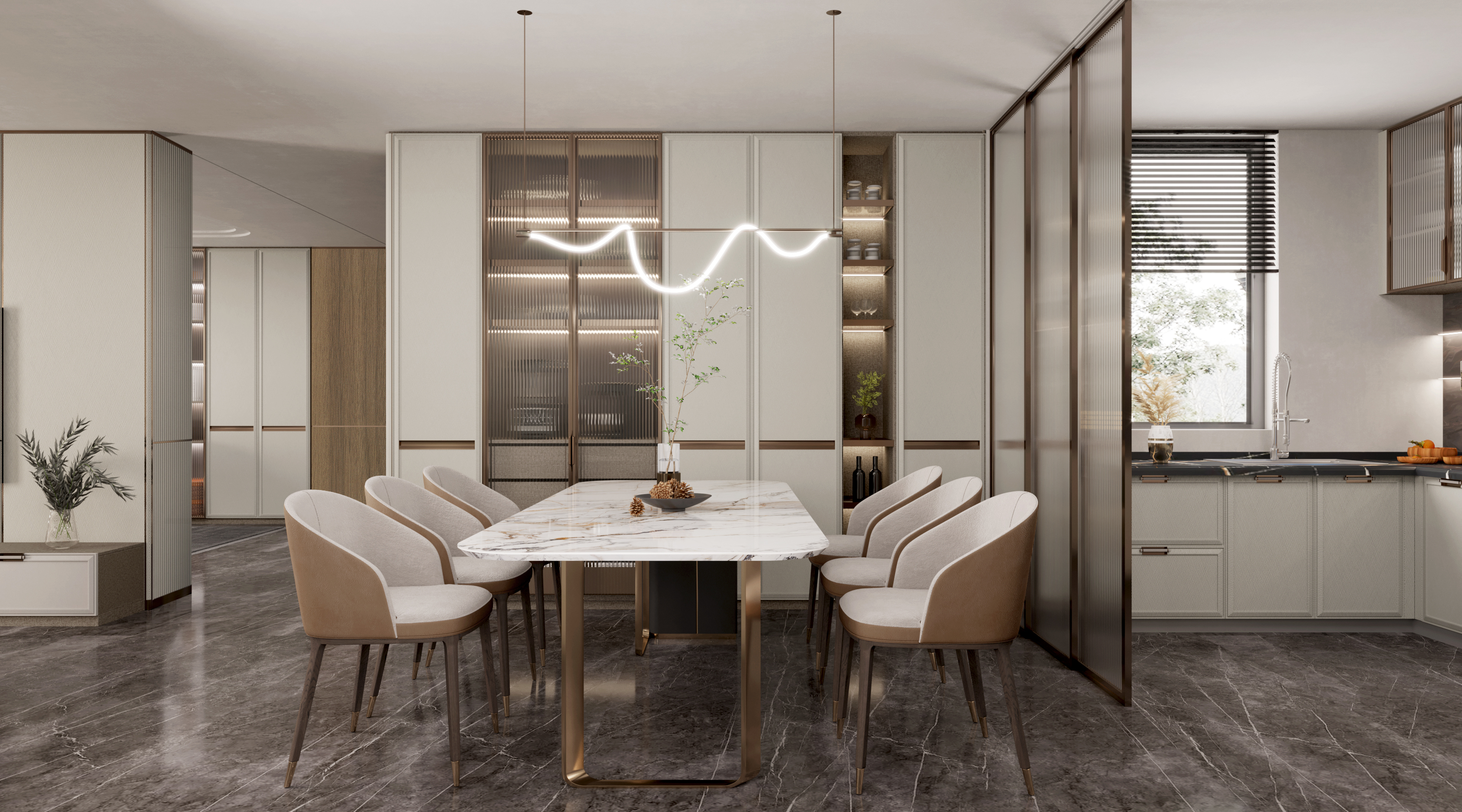 現(xiàn)代輕奢風(fēng)格,采用原木紋理,凸顯生活的本真和自然的純粹,注重現(xiàn)代和輕奢一體化設(shè)計(jì),滿足外觀與內(nèi)涵的統(tǒng)一。