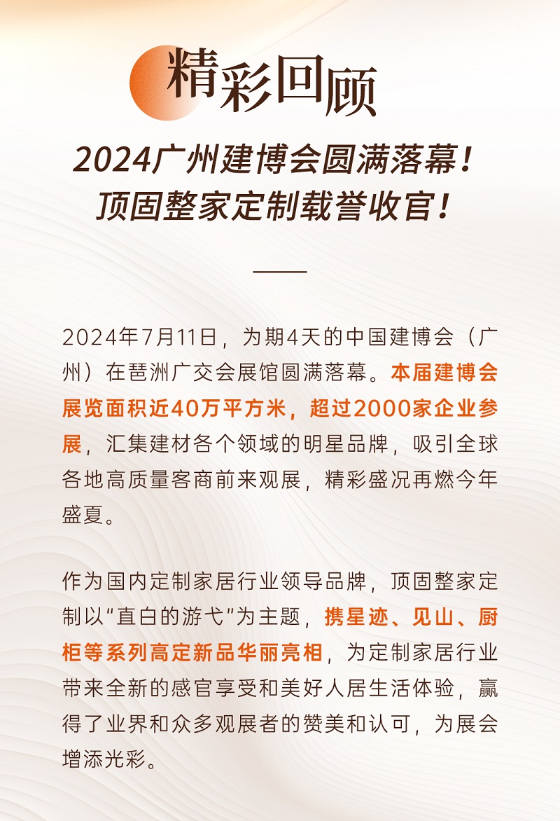 精彩回顧 | 2024廣州建博會圓滿落幕,頂固整家定制載譽收官!