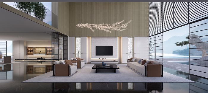 以現(xiàn)代設(shè)計語言表達東方意境,多元素、多材質(zhì)交互融合,提煉雅居空間的禪韻之美,造就一方素雅別致之所。